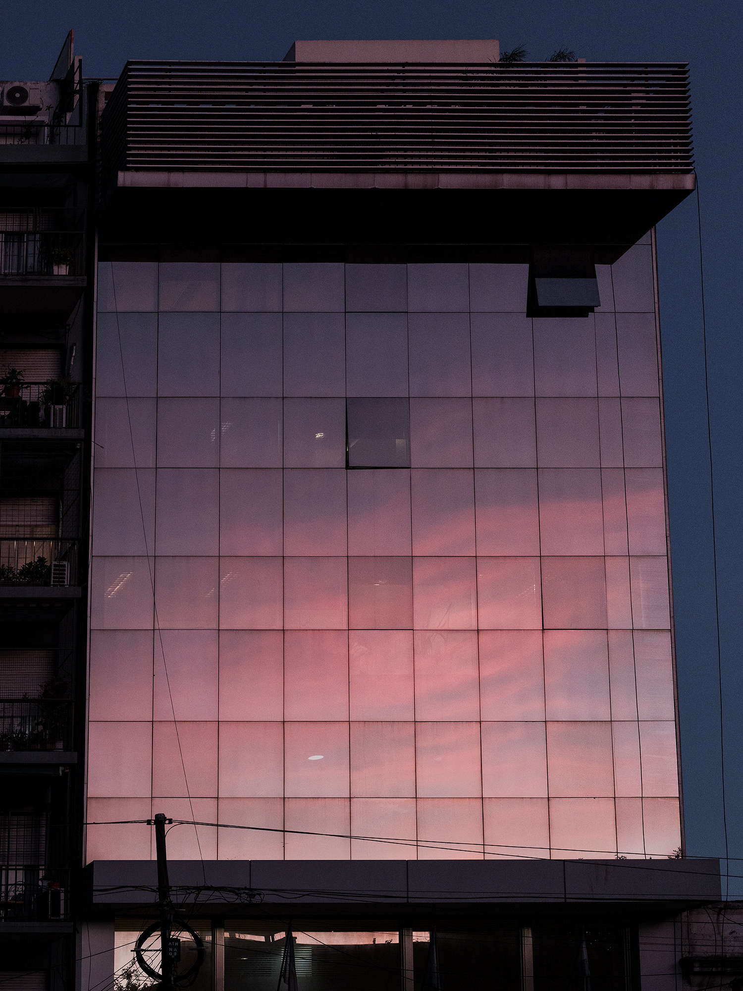 Esta serie se inscribe en una tradición fotográfica que problematiza la percepción y la representación de lo urbano, pero lo hace desde un gesto poético y contemplativo. El edificio, concebido habitualmente como símbolo de estabilidad, contención y repetición, se convierte aquí en superficie viva, en archivo involuntario de lo inconstante. Cada una de sus ventanas actúa como una celda visual que multiplica el cielo y sus estados, como si el mismo edificio contuviera, simultáneamente, múltiples climas, múltiples tiempos.