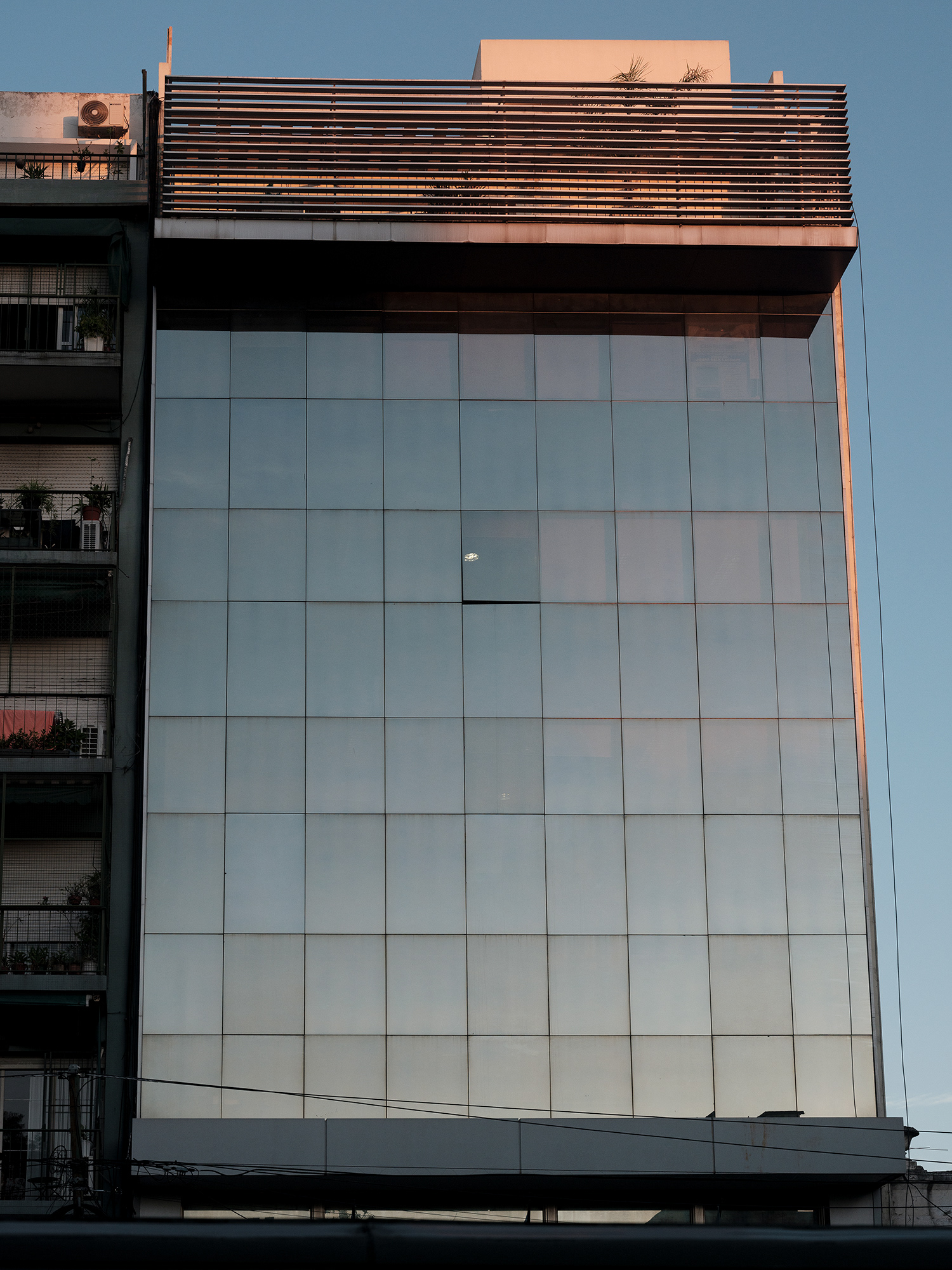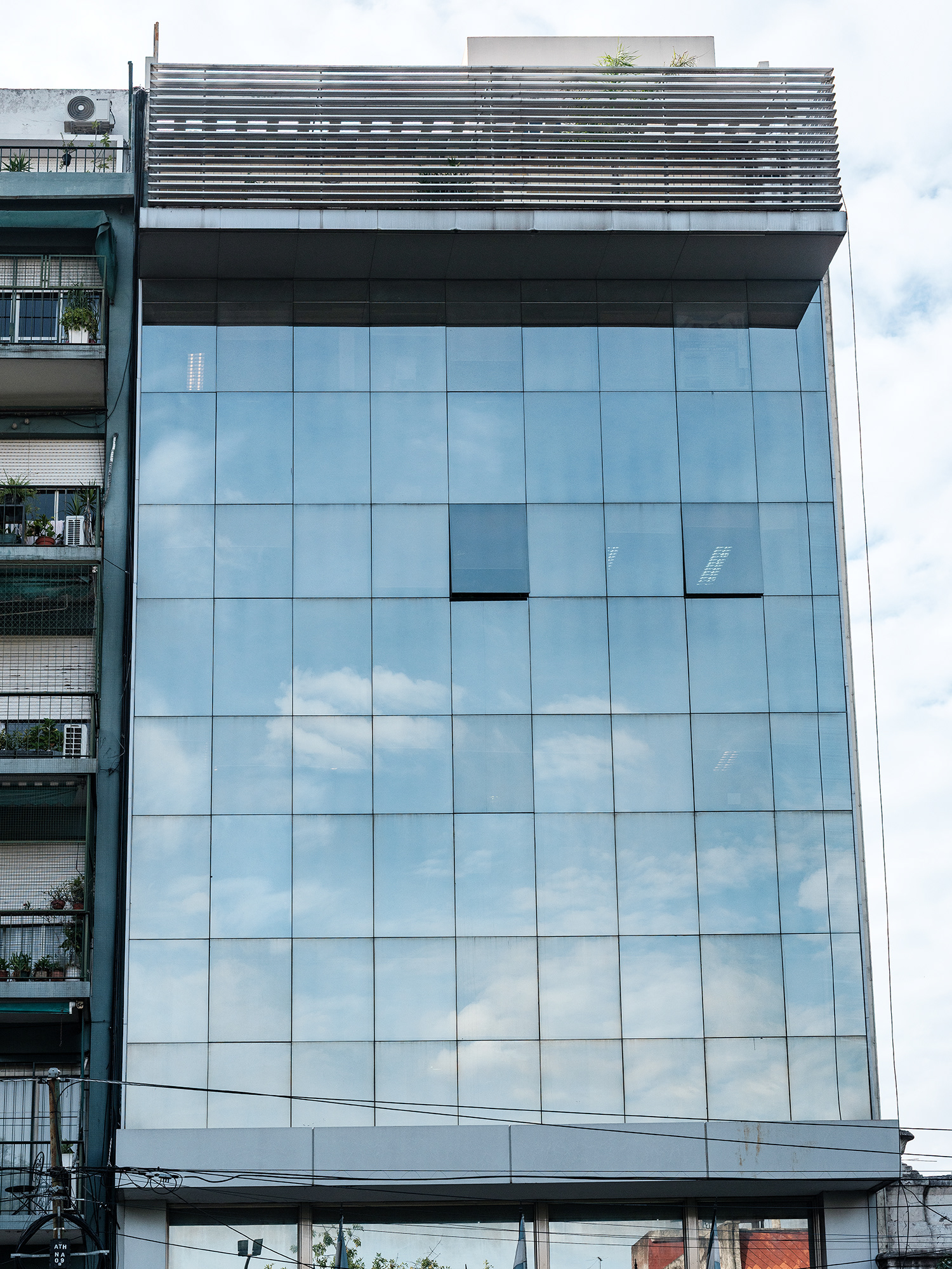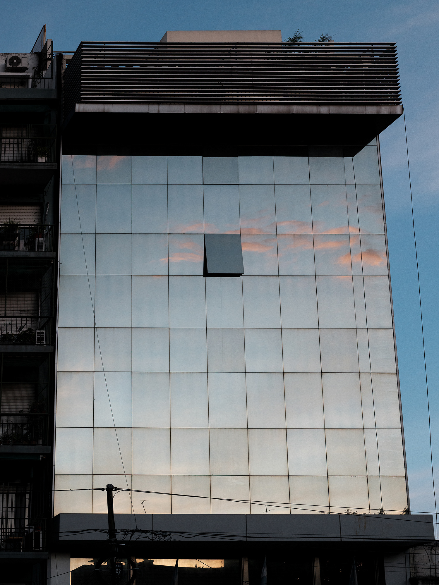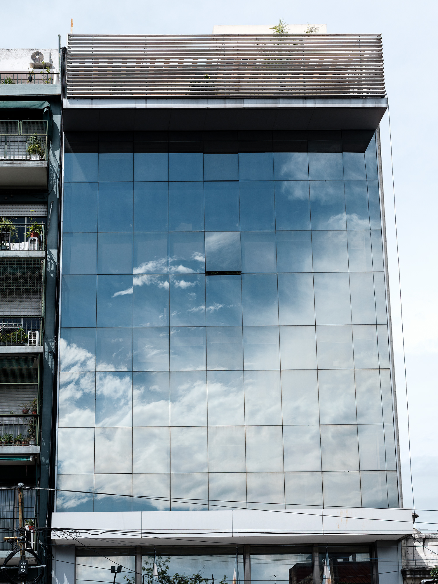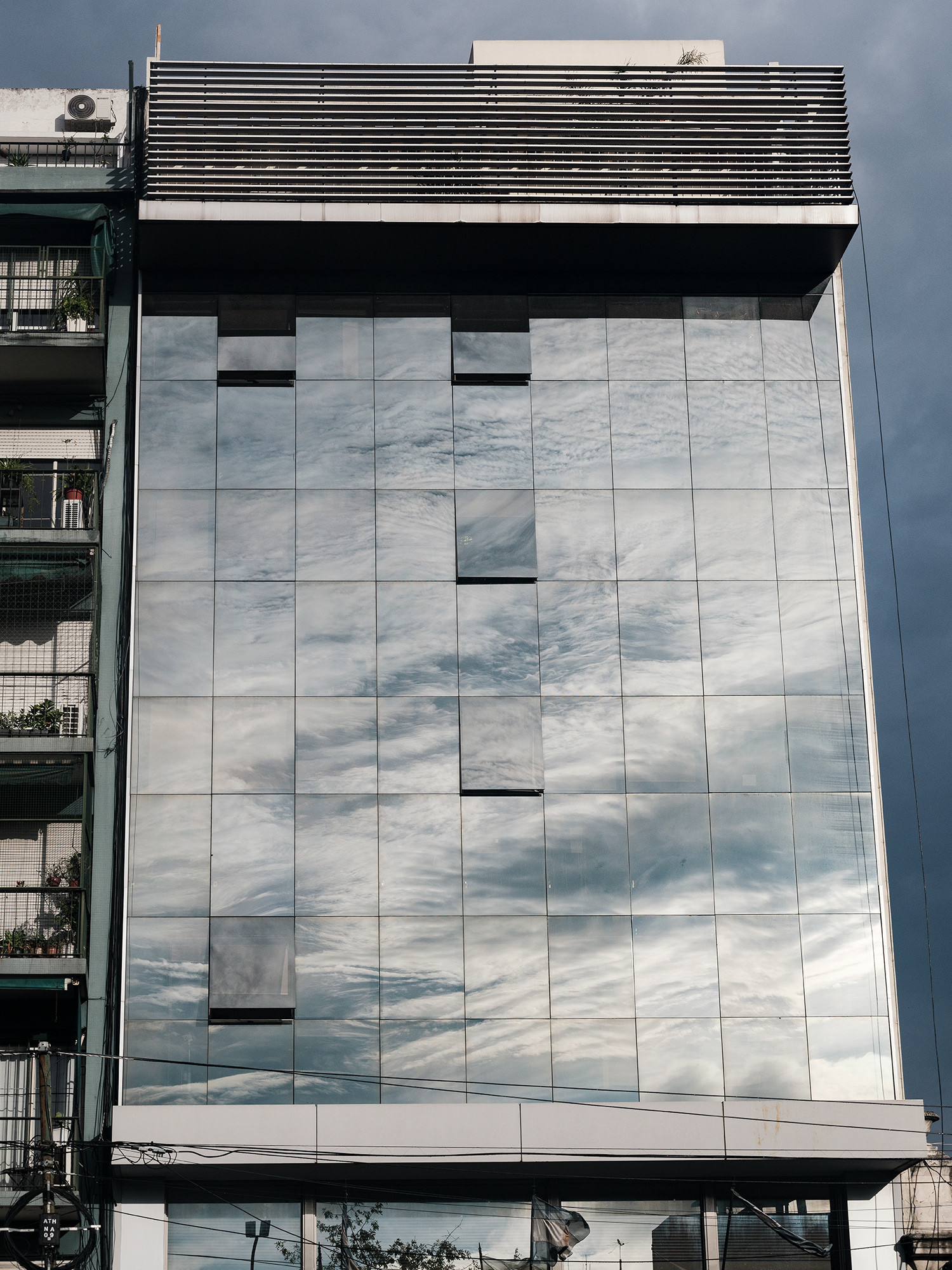 La fotografía, desde sus orígenes, ha sido una herramienta privilegiada para interrogar la relación entre luz, tiempo y espacio. ¿En Cuántos cielos tiene un edificio?, esta relación se vuelve espejo —literal y metafóricamente— a través de un edificio cuyas ventanas espejadas capturan y reproducen el cielo en todas sus variaciones. Cada imagen revela una atmósfera distinta: cielos calmos, tormentosos, crepusculares o diáfanos, que se reflejan como fragmentos de un paisaje inasible y cambiante.